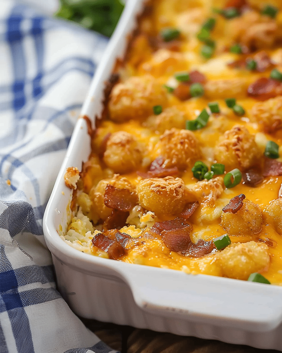 This breakfast casserole is easy to assemble, super satisfying, and completely customizable. It’s perfect for holidays, brunches, potlucks, or make-ahead weekday breakfasts. The tater tots add an irresistible crunchy layer, while the eggs and cheese bring that creamy, comforting texture everyone loves. It’s a no-fail recipe that delivers every time.