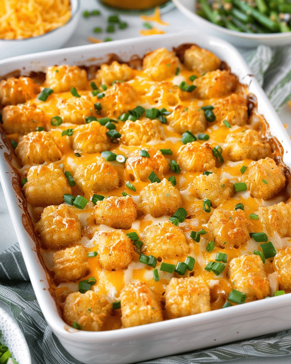 A hearty comfort food casserole made with seasoned ground beef, vegetables, creamy sauce, and topped with crispy golden tater tots. A family favorite that’s simple, filling, and perfect for busy weeknights or gatherings.