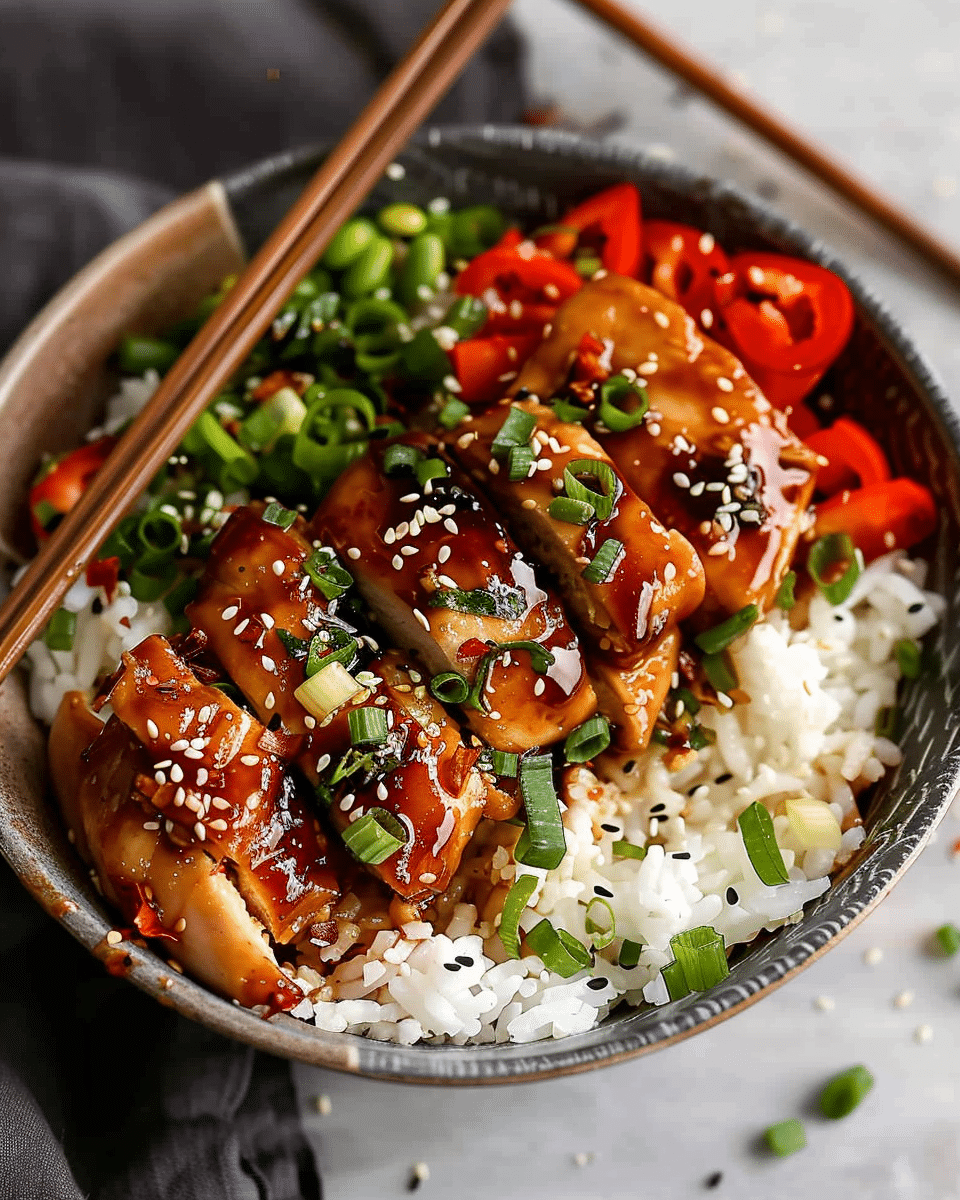 The Teriyaki Chicken Bowl is a quick and flavorful dish featuring tender chicken glazed in a sweet-savory teriyaki sauce, served over rice with crisp vegetables. It’s perfect for weeknight dinners or meal prep, offering a balanced mix of protein, grains, and veggies.