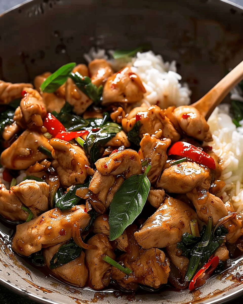 Thai Basil Chicken is a quick and flavorful dish that brings the bold, aromatic essence of Thai cuisine right to your kitchen. With simple ingredients and fast cooking time, it’s ideal for busy weeknights or when you’re craving something spicy and satisfying. Try it once, and it just might become a regular in your dinner rotation.