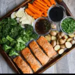 This recipe is quick, nutritious, and packed with bold flavors. The salmon turns perfectly flaky while the vegetables roast to caramelized perfection, all on one pan. The sauce brings together sweet, salty, and tangy notes, making every bite satisfying. Plus, it’s customizable and requires very little prep.