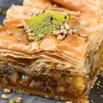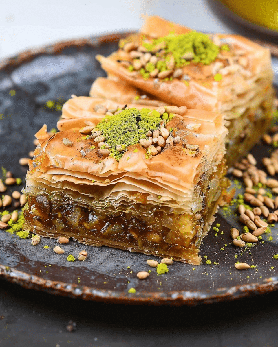 Baklava is a rich, layered dessert made with flaky phyllo dough, spiced chopped nuts, and a sweet honey syrup. Crisp, buttery, and soaked with fragrant syrup, this Middle Eastern and Mediterranean classic is an elegant treat perfect for holidays and special occasions.