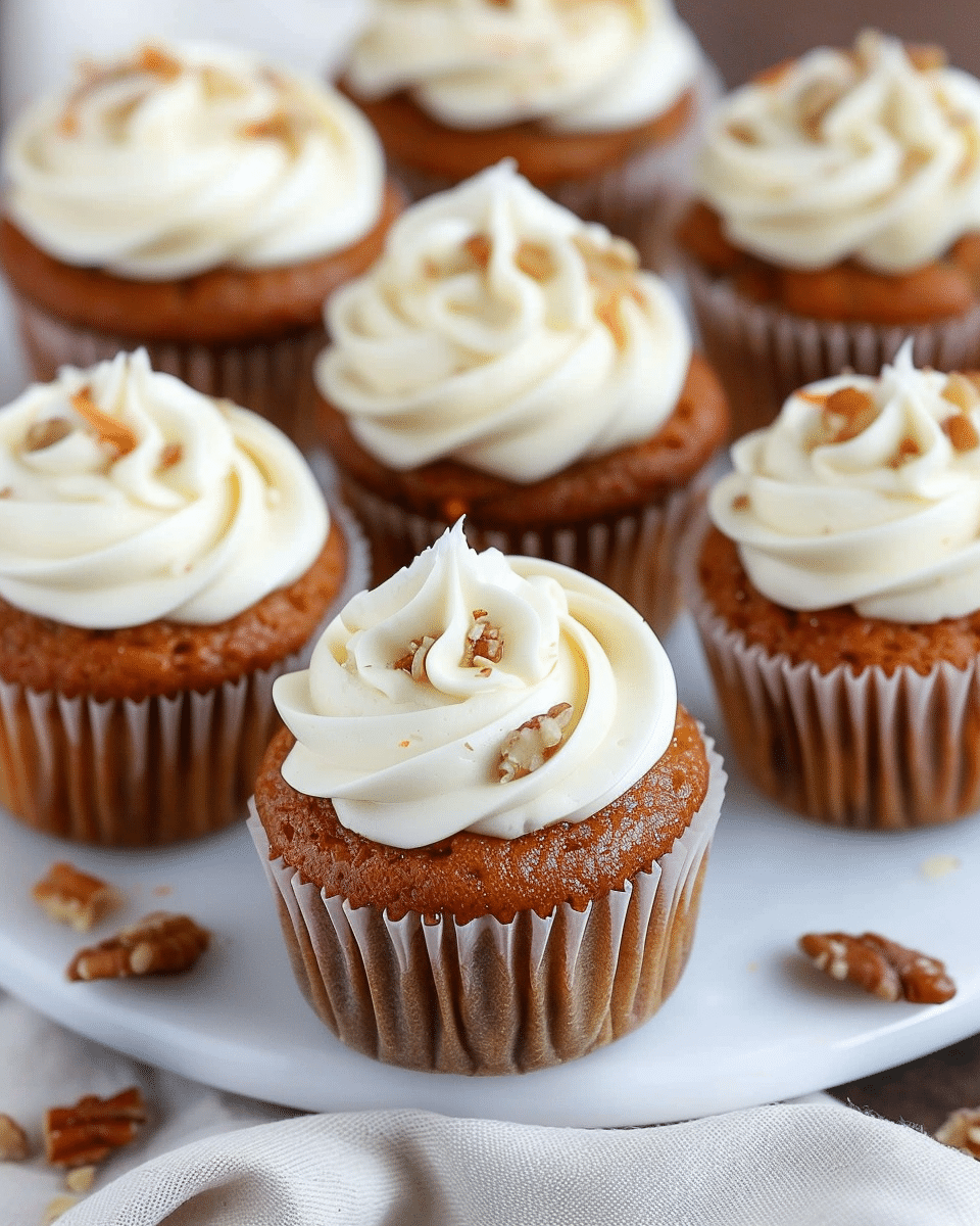 These cupcakes are incredibly soft, tender, and full of flavor thanks to a blend of cinnamon, nutmeg, and freshly grated carrots. The texture is perfectly moist without being dense, and the cream cheese frosting adds a tangy, creamy finish that balances the sweetness beautifully. They’re easy to make, freezer-friendly, and always a crowd-pleaser—no fancy tools or decorating skills required.