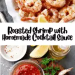 Serve the roasted shrimp warm or chilled with the cocktail sauce on the side.