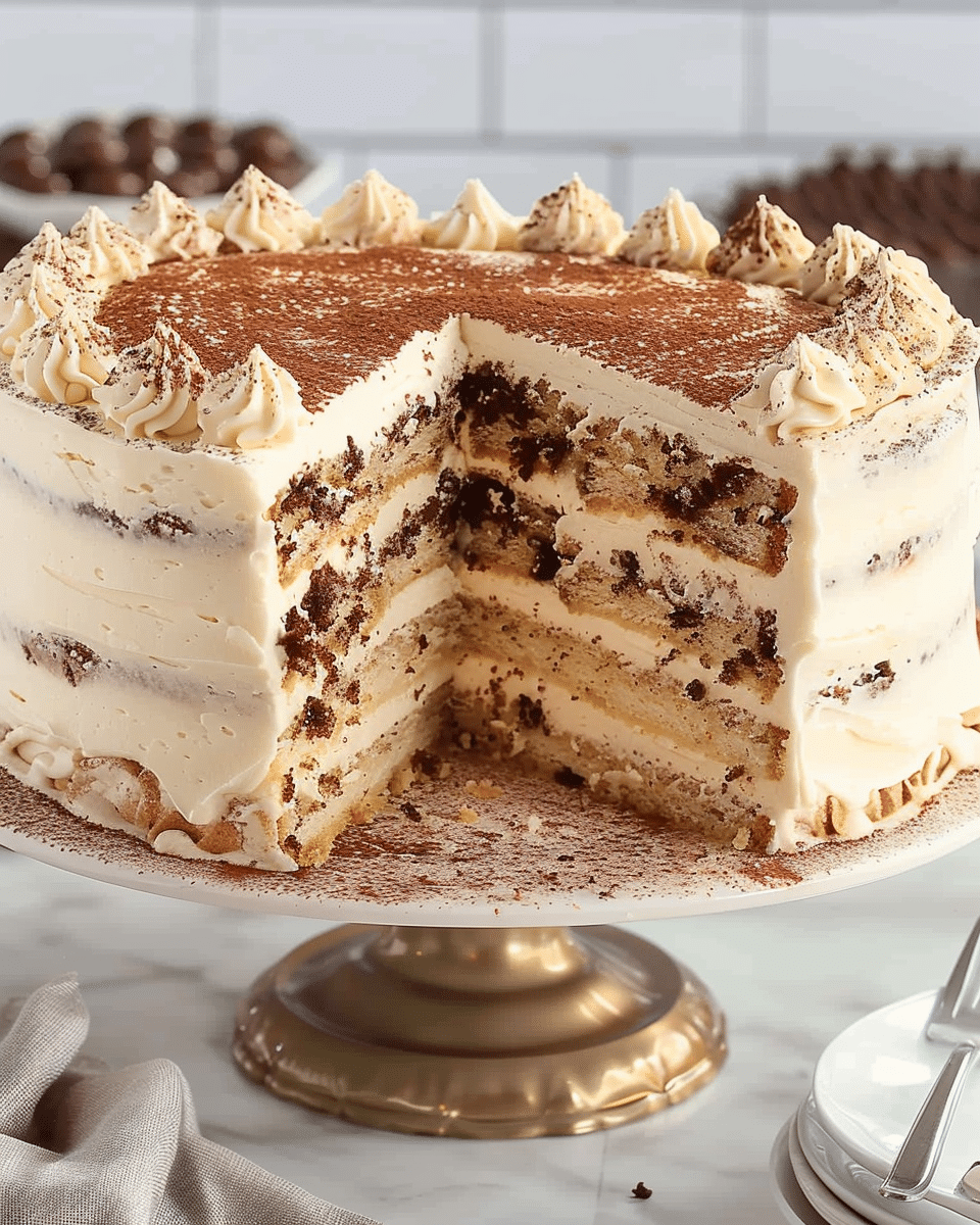 The Ultimate Tiramisu Layer Cake is a luxurious dessert that brings together the richness of classic tiramisu with the elegance of a layer cake. It’s ideal for impressing guests or treating yourself to something special. With its espresso-soaked layers, creamy mascarpone filling, and dramatic dusting of cocoa, this cake is sure to become a favorite for celebrations and gatherings alike.