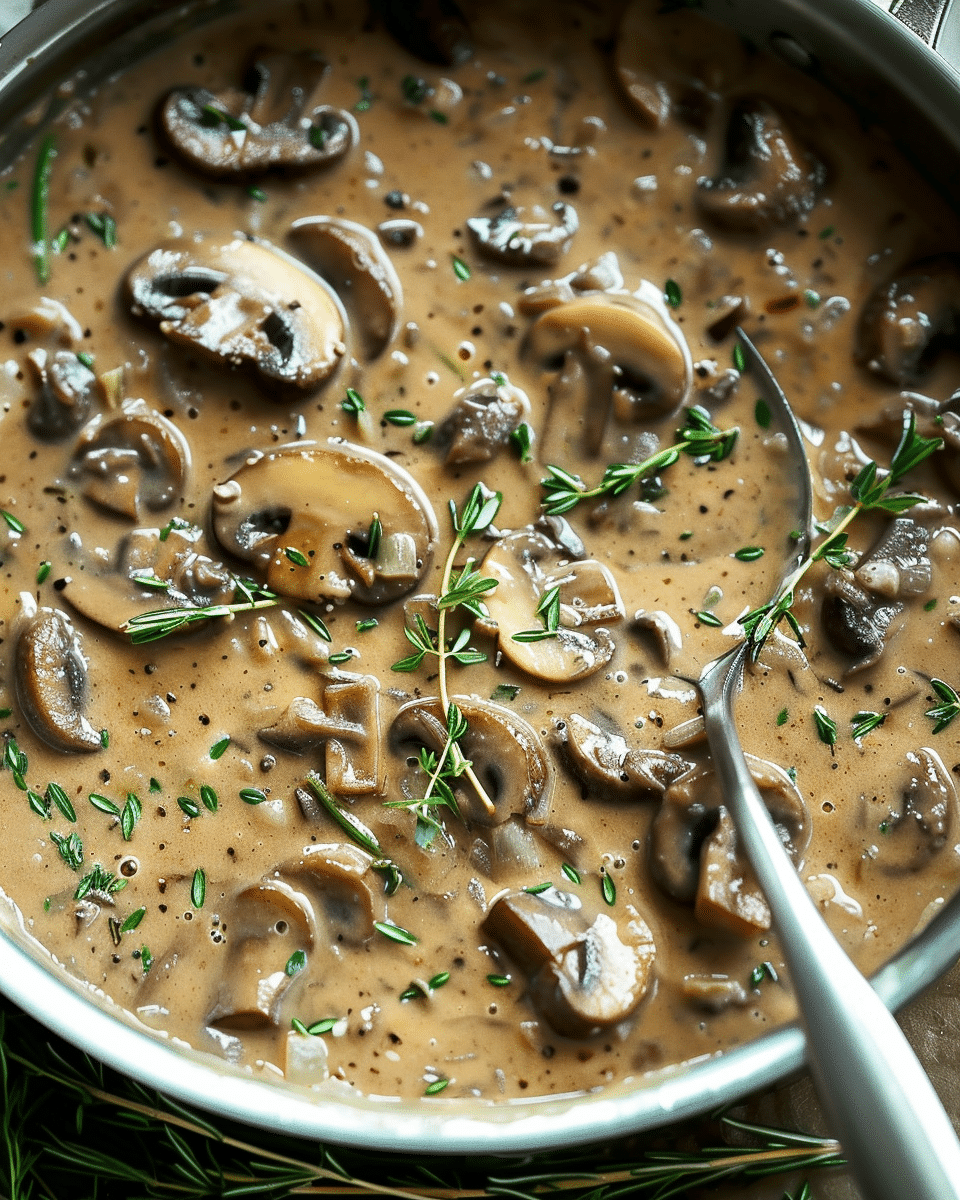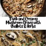 This Thick and Creamy Mushroom Gravy with Shallots & Herbs is a savory, velvety sauce made with caramelized shallots, earthy mushrooms, and fresh herbs. Perfect for topping mashed potatoes, roasted vegetables, meat dishes, or used as a dip, it’s rich in umami flavor and easily customizable for vegan or vegetarian diets.