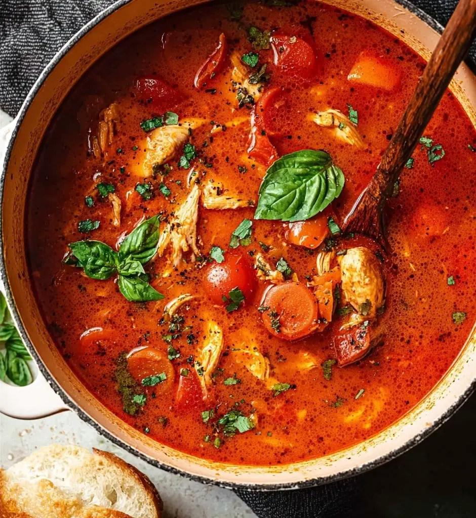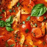 Tomato basil chicken stew is a hearty one-pot dish featuring tender chunks of chicken simmered in a rich tomato broth with fragrant basil. It’s comforting, flavorful, and perfect for a wholesome weeknight dinner.