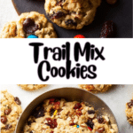 Trail mix cookies are chewy, crunchy, sweet, and salty cookies loaded with oats, nuts, dried fruit, chocolate, and other trail mix favorites. They’re the perfect snack or dessert for on-the-go energy.