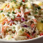 Tropical Pineapple Coconut Coleslaw is a colorful, refreshing, and flavorful side dish that brings a taste of the tropics to your table. Easy to make and versatile, it’s perfect for summer barbecues, festive meals, or anytime you want a crisp, sweet, and tangy salad that everyone will enjoy.