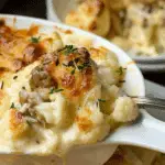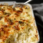 Truffle and Brie Cauliflower Cheese is a luxurious take on the classic comfort dish—featuring roasted cauliflower coated in a rich truffle-infused mornay sauce, layered with gooey brie, mature cheddar, and mozzarella, then baked until golden and bubbling.