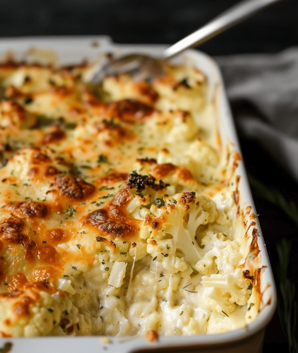 In a baking dish (approx. 9×13”), combine roasted cauliflower with the sauce, mixing gently to coat.