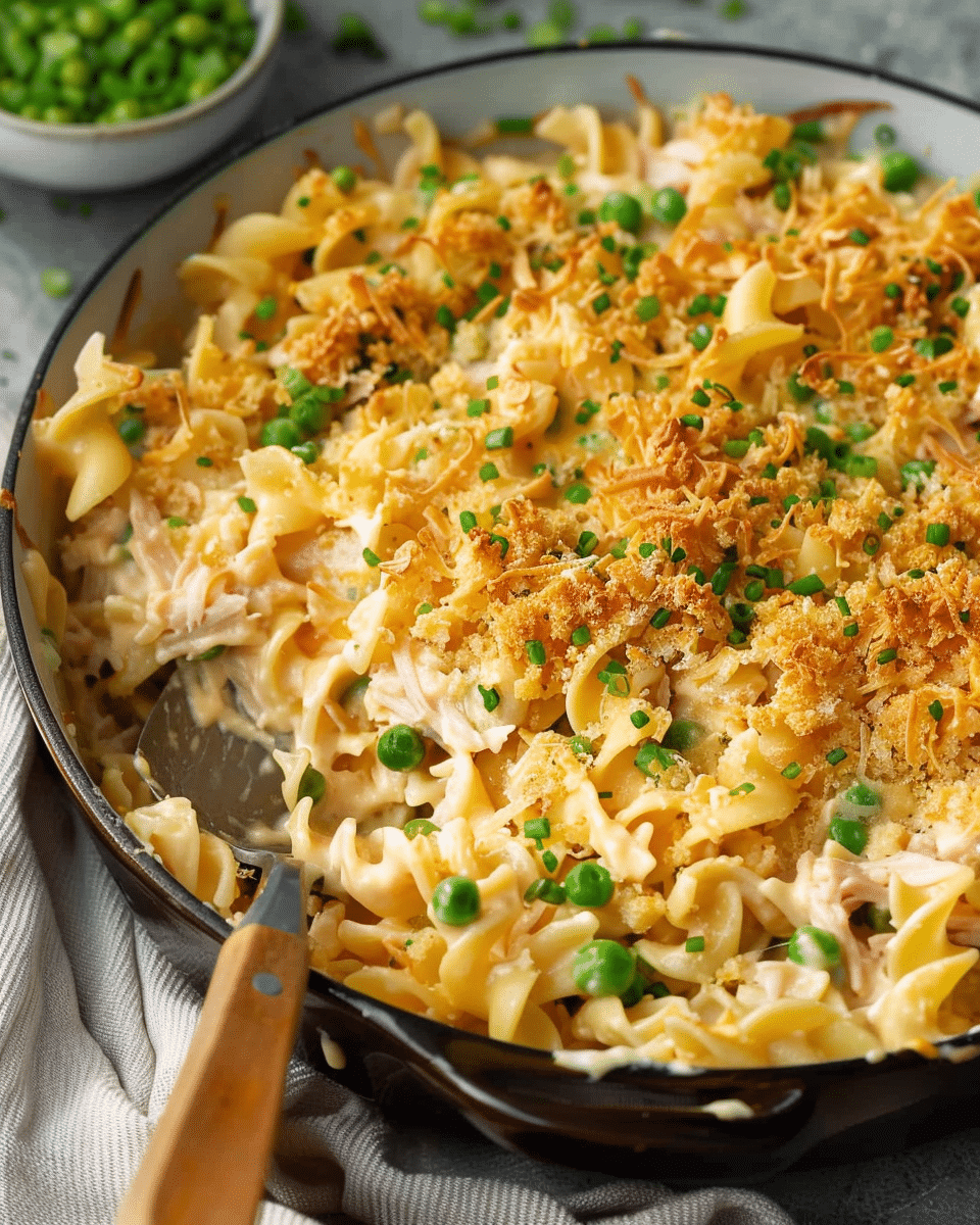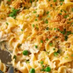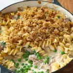 Tuna Noodle Casserole is a classic, creamy comfort food made with tender egg noodles, flaky tuna, and a rich mushroom sauce, topped with a crispy, buttery crust. It’s easy, budget-friendly, and perfect for busy weeknights or cozy family meals.