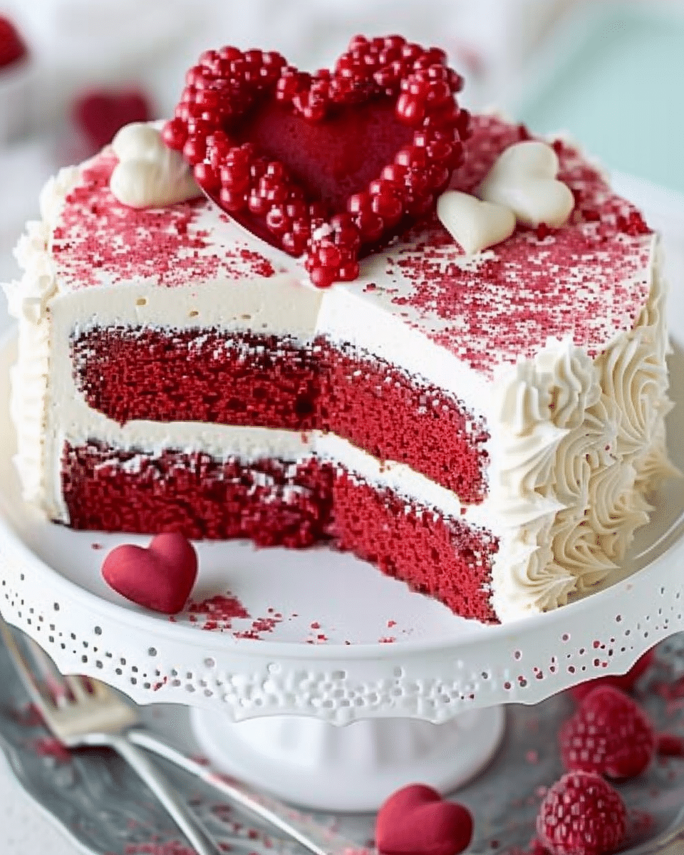 This Valentine’s Day Cake is a festive, delicious dessert with a soft vanilla cake, creamy buttercream frosting, and romantic decorations, perfect for celebrating love.