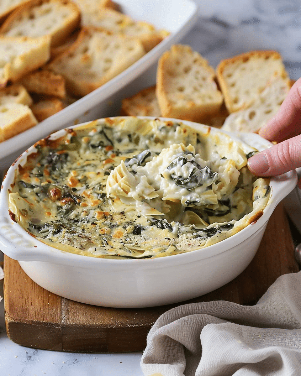 Baked Version: Transfer the dip to an oven-safe dish and bake at 375°F (190°C) for 15–20 minutes for a bubbly, golden top.