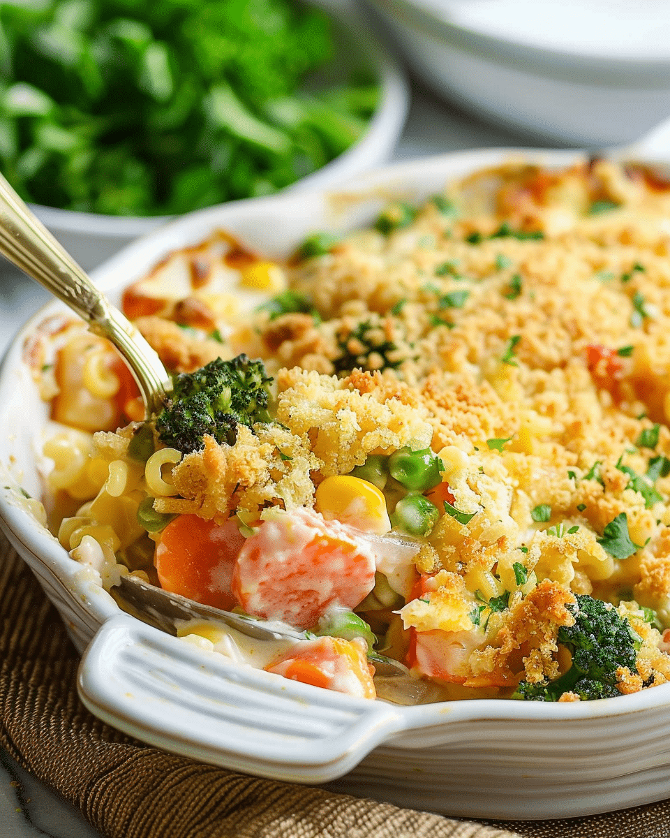 This casserole is easy to make, customizable, and family-friendly. It’s a great way to use up fresh or frozen vegetables, and the creamy base paired with a crunchy topping makes it both wholesome and comforting. Whether you serve it for a weeknight dinner, holiday gathering, or potluck, it’s sure to please everyone at the table.
