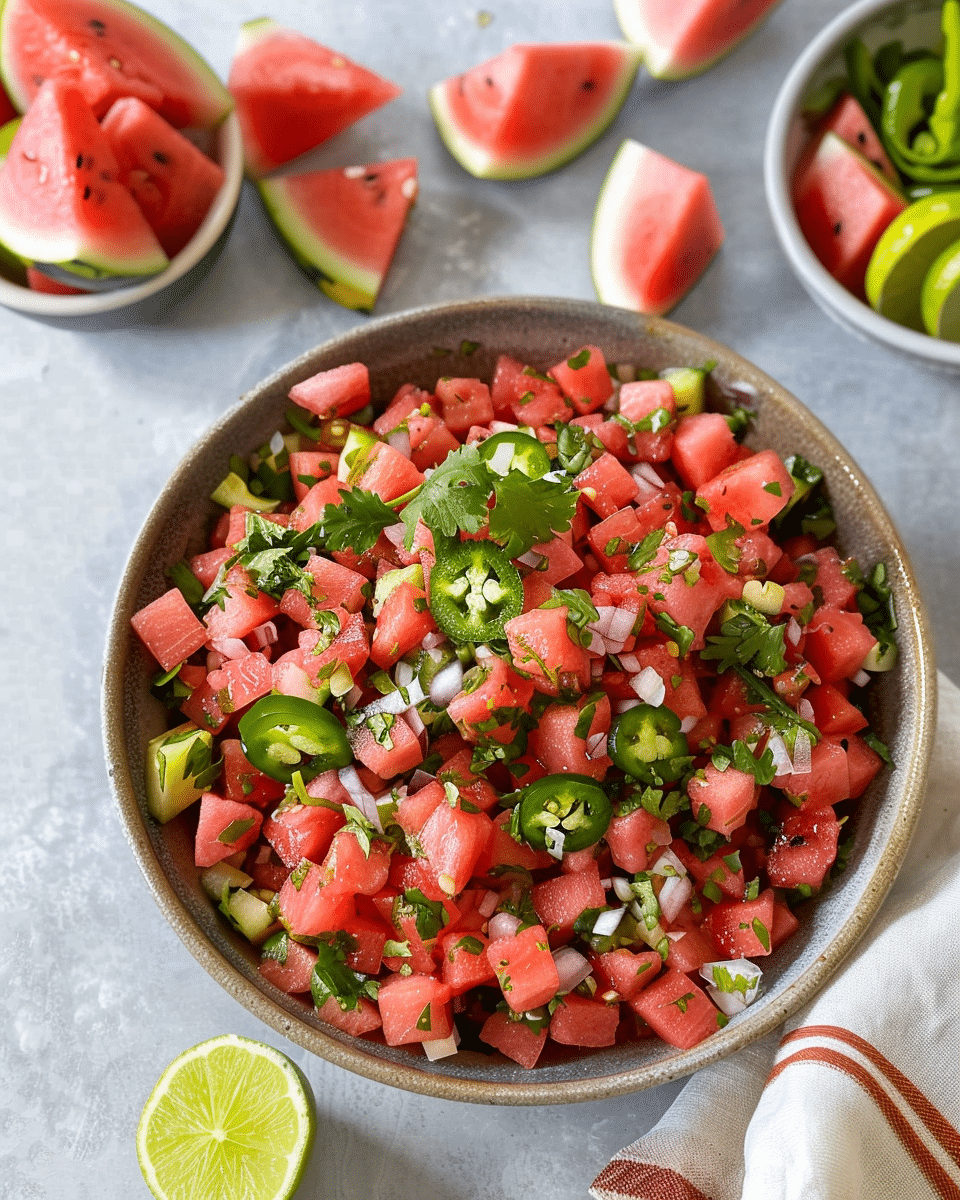 Watermelon Salsa is a refreshing and colorful twist on traditional salsa, combining sweet watermelon with crisp vegetables, zesty lime, and a touch of heat. It’s the perfect summer appetizer or side dish for parties, BBQs, or light snacking.