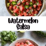 Store leftover watermelon salsa in an airtight container in the refrigerator for up to 2 days. Note that the watermelon will release more juice over time, so it’s best enjoyed fresh. Stir before serving to redistribute the juices and flavors.