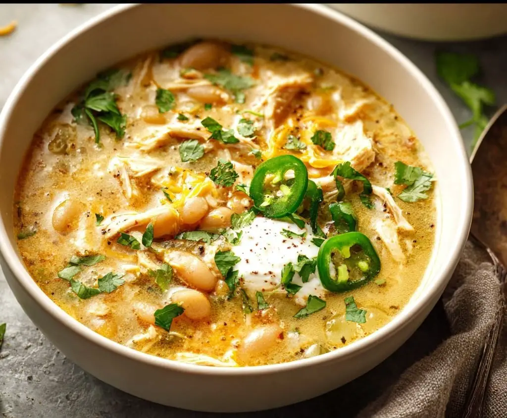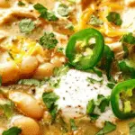 White chicken chili is a creamy, comforting chili made with shredded chicken, white beans, green chilies, and warm spices. It’s easy to make, mildly spicy, and perfect for cozy dinners or make-ahead meals.