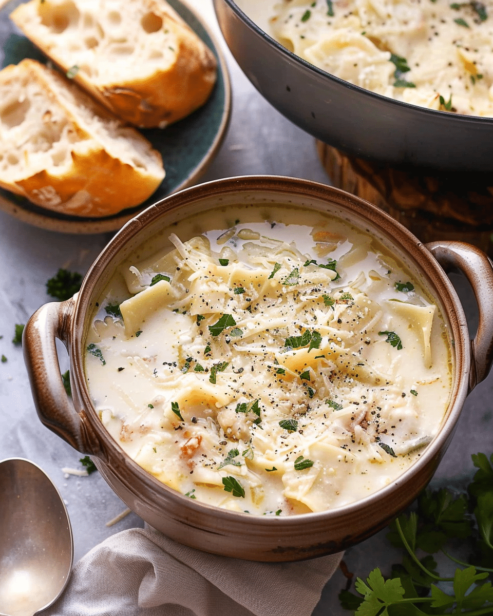 White Lasagna Soup is a cozy, creamy, and satisfying meal that captures all the comforting flavors of lasagna in a one-pot dish. It’s perfect for weeknight dinners, cold weather meals, or whenever you’re craving something hearty and homemade. With its creamy texture, melty cheese, and tender pasta, this soup is sure to become a family favorite.