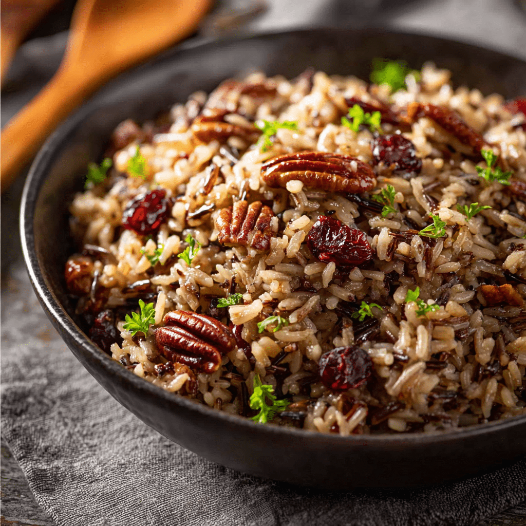 Toasting pecans beforehand enhances their flavor and crunch.Wild rice blends can be used for a quicker cooking time.Add mushrooms or apples for extra depth and sweetness.A splash of orange juice or zest brightens the dish.Add broth when reheating if the rice becomes dry.